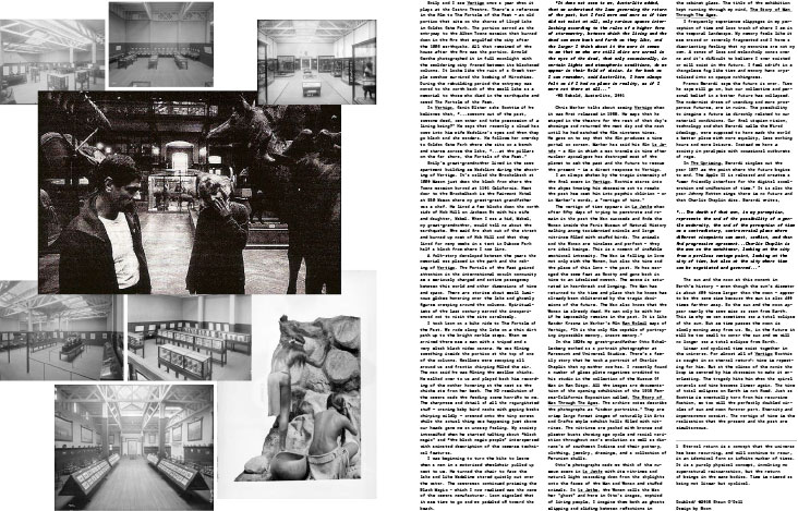 Emily and I see Vertigo once a year when it plays at the Castro Theatre. There’s a reference in the film to The Portals of the Past - an old portico that sits on the shores of Lloyd Lake in Golden Gate Park. The portico served as the entryway to the Alban Towne mansion that burned down in the fire that engulfed the city after the 1906 earthquake. All that remained of the house after the fire was the portico. Arnold Genthe photographed it in full moonlight with the smoldering city framed between its blackened columns. It looks like the ruin of a Greek temple somehow survived the bombing of Hiroshima. During the rebuilding period the entryway was moved to the north bank of the small lake as a memorial to those who died in the earthquake and named The Portals of the Past.